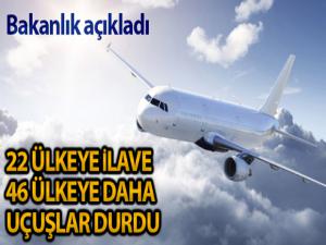 Ulaştırma ve Altyapı Bakanlığı, Covid-19 salgını çerçevesinde uçuş yasakları hakkında duyuru yaptı. Duyuruda, 22 ülkeye ilave olarak 46 ülkeye daha uçuşlar durdurulduğu belirtildi.