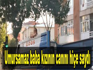 Yolda giden araçların kornayla uyarısına rağmen umursamaz baba kimseyi dikkate almadan aracını sürmeye devam etti.