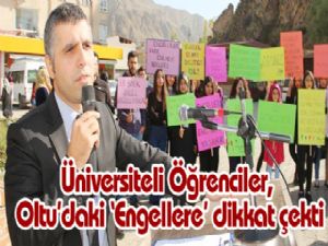 Oltu Kale Meydanı'nda toplanan öğrenciler düzenledikleri mini bir programla kaldırımlardaki engelli rampalarına park eden araçların uyarılması ile yürüme ve görme engelli bireylerin yaşadıkları zorluklara dikkat çekti. Öğrenciler açtıkları pankartlarla, 'En Büyük Engel, Engellenmektir' yazdı.