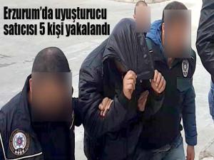 Uyuşturucu sattıkları tespit edilen M.A.C, G.D, H.A, M.E.D ve F.K isimli sokak satıcılarının yakalanması amacı ile gerçekleştirilen eş zamanlı operasyonda 4 şüpheli Erzurum İl Merkezinde, 1 şüpheli ise Trabzon İl Merkezinde olmak üzere toplam 5 şahıs yakalandı. Şüphelilerin ikametlerinde yapılan aramalarda uyuşturucu hazırlamak ve içmek için kullanılan aparatlar ve 3 parça halinde bir miktar esrar maddesi ele geçirildi. (iha)