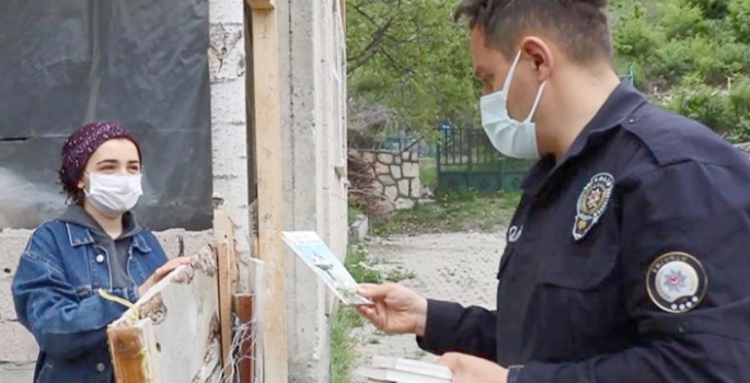 Erzurum’un Uzundere ilçesinde polisler kapanmadan dolayı evlerinden çıkamayan ve okullarına gidemeyen çocuklar için köy köy dolaşıp miniklere teker teker kitap dağıttı.