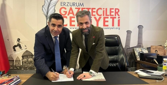 VakıfBank Erzurum Şubesi Müdürü Özgür Göktaş’ın Erzurum Gazeteciler Cemiyeti yeni yönetimini ziyaret ettiği programda, EGC ile VakıfBank arasında protokol imzalandı.