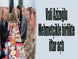 İftar yemeğinde er ve erbaşlarla tek tek sohbet eden Vali Azizoğlu, kahraman Mehmetçik ile birlikte iftar açmanın memnuniyetini dile getirdi.
