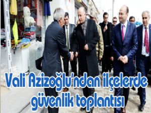 Azizoğlu, beraberinde Jandarma Bölge Komutanı Tümgeneral Güray Alpar, İl Jandarma Komutanı Kıdemli Albay Mustafa Çelik, İl Emniyet Müdürü Mehmet Aslan, İl Müftüsü Hasan Hüsnü Sula, İl Gıda Tarım ve Hayvancılık Müdürü Osman Akar ve İl Halk Sağlığı Müdürü Mahmut Uçar ile 16 Nisan'da gerçekleştirilecek halk oylamasında herhangi bir sıkıntı yaşanmaması için gittiği ilçelerde, kaymakam ve muhtarlarla bir araya gelerek güvenlik toplantıları yaptı.