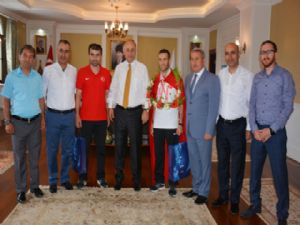 Ayağının tozu ile Erzurum Valisi Seyfettin Azizoğlu'nu ziyaret eden milli judocuya Cumhuriyet altını hediye edildi.