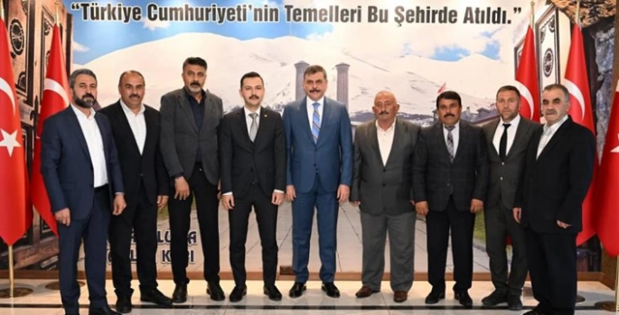 Aşkale Kaymakamı Emre Oğuztürk’e ziyaretleri esnasında Muhtarlar Derneği Başkanı Erkan Kırkpınar, Düzyurt Mahallesi Muhtarı Yavuz Maral, Akören Mahallesi Muhtarı Murat Fırat, Dağyurdu Mahallesi Muhtarı Adnan Kaya, Gölören Mahallesi Muhtarı Turan Kaplan, Yeşilova Mahallesi Muhtarı Mürsel Karapınar, Çayköyü Mahallesi Muhtarı Binali Tolu eşlik etti.