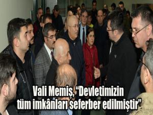 Vali Memişe ziyaretlerinde İl Emniyet Müdürü Mehmet Aslan, İl Jandarma Komutanı Kıdemli Albay Ali Gemelmaz, İl Sağlık Müdürü Dr. Gürsel Bedir ve Aile, Çalışma ve Sosyal Hizmetler İl Müdürü Cemil İlbaş eşlik etti.