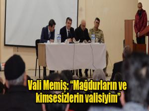 Tüm vatandaşların kamu kaynağından faydalanması için büyük bir çaba içerisinde olduklarını ifade eden Vali Memiş, Ben daha çok çaycının, çöpçünün ve çobanın yanındayım. Mağdurların ve kimsesizlerin valisiyim. Devlet olarak daha çok onların yanındayız. Kimseyi aç veya açıkta bırakmak istemiyoruz. Bu zengin vatandaşlarımızın karşısında olduğumuz anlamına gelmesin. Ama bizler daha çok bu vatandaşlarımızın yanındayız diye konuştu.