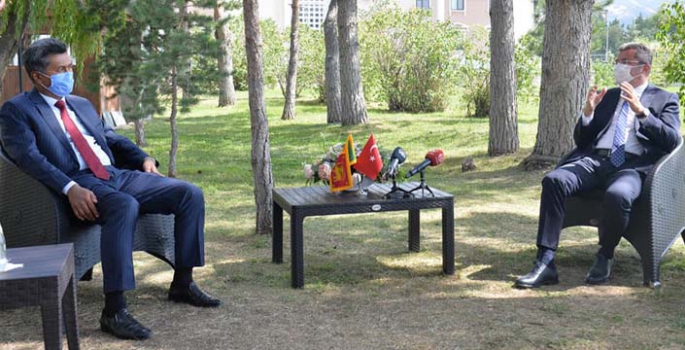 Vali Okay Memiş, konuğu ile bir süre sohbet ederek, Erzurum'un genel durumu hakkında bilgi verdi.