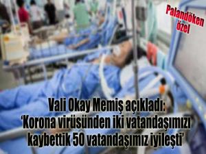 Vali Okay Memiş, Erzurumda yoğun bakımda korona virüs tedavisi görüp şifa bularak taburcu olan hasta sayısının da 50ye ulaştığını söyledi.