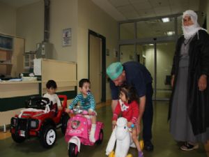 Erzurum Bölge Eğitim ve Araştırma Hastanesi Yanık Tedavi Merkezinde sıcak su ve çaydanlıktan yanarak birinci ve ikinci derece yanıkları oluşan küçük yaştaki çocuklar tedavi altına alındı. Çocukların yanıklarından dolayı sürekli acı çekmesi ve ağlaması üzerine hastane yönetimi yeni bir uygulamayı hayata geçirdi. Yanık tedavi merkezine akülü araba ve bisiklet alan hastane yönetimi çocukların acılarını hafifletti. Akülü araba ve bisiklete binerek acılarını unutan çocuklar, birbirleriyle keyifli anlar geçiriyor.