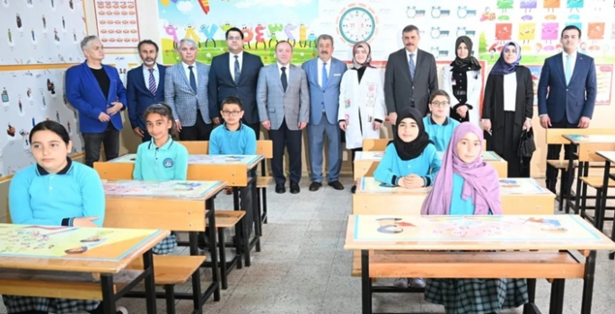 Vali Mustafa Çiftçi, yabancı dil olarak Arapça eğitim alan ve öğrencilerin kolay öğrenmesini sağlamak amacıyla Arapça Öğretmeni Ruşen Hattatoğlu Ece’nin çabalarıyla oluşturulan, görsel öğelerle zenginleştirilmiş sınıfları gezdi.