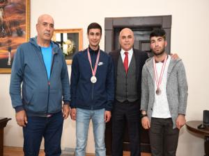 Başkan Ali Korkut, Türkiye Şampiyonasında gümüş madalya kazanan Serkan Ergün Ağa (64 kilo) ile Ener Çelik (60 kilo)'i ve antrenör Cumali Yılmaz'ı başarılarından dolayı tebrik etti. Korkut, "Biz gençlerin kötü alışkanlıklar, kahve yaşantısına değil spora yönelmesini istiyoruz. Bu nedenle çeşitli branş ve dallarda gençlerimize spor imkanı sunuyoruz. Bir gencin kahve yerine spora yönelmesi başarıdır, bu gençler tebriği zaten hak ediyorlar. Fakat sporcularımızın en iyi olmalarını da arzu etmiyor değiliz. Başarılarının devamını diliyorum" şeklinde konuştu. (iha)