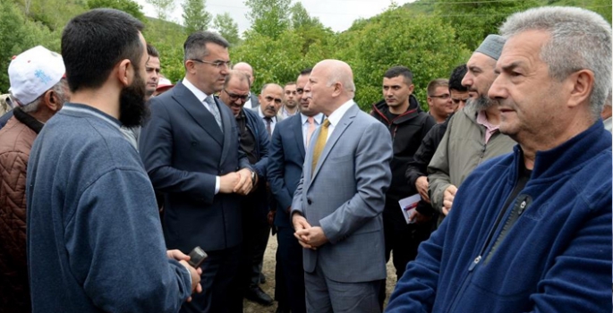Köşeyolu mahallesinde incelemelerde bulunan Vali Okay Memiş, cep telefonu aracılığıyla İçişleri Bakanı Ali Yerlikaya'yı vatandaşlarla görüştürdü.