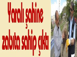 Oltu ilçesinde yaralı bulunan şahine zabıta sahip çıktı.