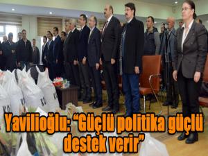 Tarım üretimine katkıda bulunmak için devletin her dönem destek ve hibelerinin artarak devam ettiğine dikkat çeken Yavilioğlu, Arkadaşlarımız kardeşlerimiz de geçmiş dönemden itibaren bilirler ki bu hükümet milletin istediği, talep etmiş olduğu şeyleri bütçesi nispetinde, gücünü sonuna kadar kullanmak suretiyle bu güne kadar yaptı, gerçekleştirdi. Hiç şüpheniz olmasın bundan sonra da bu güçlü destek devam edecektir. 2002 Yılından itibaren tarımsal desteklere, teşviklere hibelere bakın hem miktar olarak hem de yüzdelik olarak sürekli artarak gelen ve devam eden desteklerimiz var. Sadece bunula kalmadık, çiftçilerimizin sağlık sisteminden sosyal hizmetler sisteminden faydalanmasının önünü açacak bütün politikaları yine bu hükümet döneminde, Ak Parti döneminde yaptık, geçekleştirdik ve hizmetinize sunduk şeklinde konuştu.