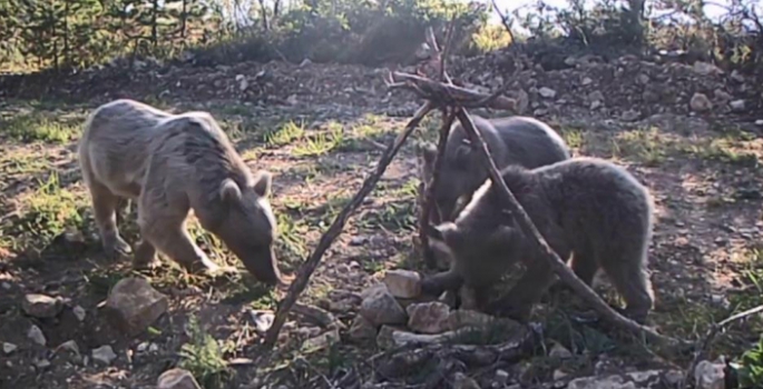 Polat’ın fotokapanına bu kez yavru ayılar yakalandı. Kendi aralarında oyun oynayan yavru ayıların hareketleri güldürdü.