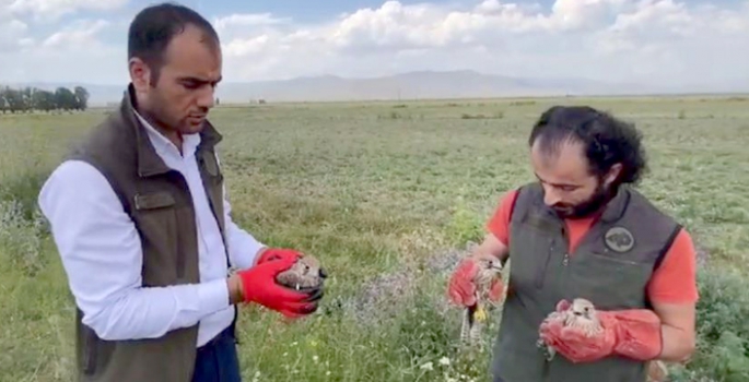 Erzurum'da 22 gün önce vatandaşlar tarafından kendilerine getirilen 3 yavru kerkenezi büyüten uzmanlar, onları doğaya saldı.