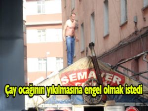 Olay, bugün Erzurum'un Yakutiye ilçesi Cumhuriyet Caddesi üzerinde bulunan bir çay ocağında meydana geldi. Yıkım kararı bulunan çay ocağına giden ekipler, direnişle karşılaştı. Eksi 10 derece havada yıkıma direnen çay ocağı sahibi E.T., üzerindeki kıyafetleri çıkarıp, eline aldığı ekmek bıçağıyla barakanın üzerine çıktı. Yaklaşık üç saat barakanın üzerinde direnişte bulunan E.T., soğuk havanın etkisiyle titredi. E.T.'yi ikna edebilmek için gelen Emniyet Müdürlüğünde görevli sosyolog ve polis müdürleri uzun süre dil döktü.