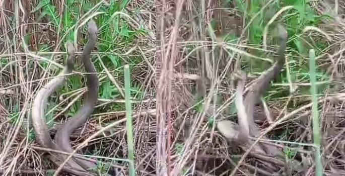 Ayvalı Mahallesi sakinlerinden Nuh Albayrak evine giderken çalılıkların içerisindeki iki yılanın danslarına denk geldi ve hemen cep telefonuyla kayıt yaptı.