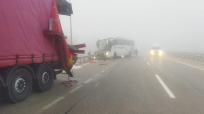 Erzurum'u Pasinler ilçesine bağlayan karayolunda bir yolcu otobüsü yoğun siz nedeniyle seyir halindeki tıra arkadan çarptı. Kazada çarpışmanın etkisiyle yaralananlar oldu ve yaralılar ambülanslarla hastaneye sevk edildi.
