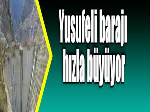 Devlet Su İşleri (DSİ) Genel Müdürlüğü tarafından inşa edilen Yusufeli Barajı ve Hidroelektrik Santralı (HES) Projesi'nde baraj gövde betonu dökülmesi çalışmalarının hız kesmeden devam ediyor. Tamamlandığında ülkemizin en yüksek barajı unvanını alacak Yusufeli Barajı'nda gövde 184 metre yüksekliğe ulaşıldı. Baraj genelinde yüzde 72'lik fiziki gerçekleşme sağlanırken, dökülen gövde beton miktarı ise 2.562.000 metreküp seviyesi ulaştı. Yusufeli Barajı'nda geçen yıl başlayan gövde beton döküm işlemlerinde toplamda 4 milyon metreküp gövde hacmine sahip barajın programlamaya göre gövde betonunun 2 yılda tamamlanması hedefleniyor. Baraj tamamlandığında, 275 metre yüksekliğiyle çift eğrilikli beton kemer kategorisinde Türkiye'nin en yüksek, dünyanın ise 3. yüksek barajı olacak. 16 Ekim itibarıyla baraj için dökülen gövde beton miktarı 2.562.000 metreküp seviyesine ulaştı. Tamamlandığında Yusufeli Barajı ve Hidroelektrik Santral Projesi'nin kurulu gücü 558 megavat ve yıllık enerji üretimi 1 milyar 888 milyon kilovatsaat olacak. Projenin santral binası ve enerji yapılarında betonlama çalışmaları planladığı şekilde devam ederken, enerji santralinin elektro mekanik parçalarının montajları da inşaat faaliyetlerine bağlı olarak yürütülüyor.Yusufeli Barajı, 275 metre gövde yüksekliğiyle 100 katlı bir gökdelen yüksekliğine ulaşacak. Baraj gövdesinde kullanılacak 4 milyon metreküp beton, Artvin'den Edirne'ye 13 metre platform genişliğinde beton yol yapılmasını sağlayacak kapasiteye sahip bulunuyor. Projeyle üretilen enerji sayesinde yaklaşık 600 bin kişinin enerji ihtiyacı karşılanabilecek.