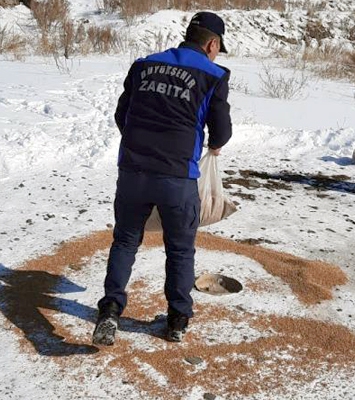 Zabıta ekipleri kışın zorlu hava koşullarında aç kalan kuşlar için şehrin dört bir yanına kuş yemi bıraktılar.