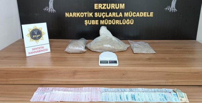 Operasyonda 1 kilo 187 gram sentetik kannabinoid (bonzai), 1 adet hassas terazi ve bu suçtan elde edildiği değerlendirilen 16 bin 190 TL ile 10 ABD doları ele geçirildi.