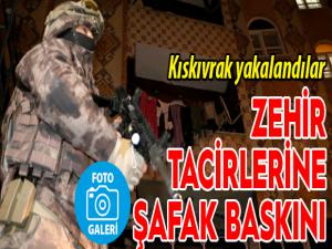 Erzurum Cumhuriyet Başsavcılığının koordine ettiği şafak operasyonunda aranan 13 şüpheli polisin baskın yapması sonucu yakalanarak sorgulanmak üzere emniyete götürüldü.