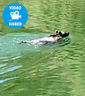 Suda yüzmenin keyfini yaşayan ayıyı fark eden baraj çalışanları o anları kameraya aldı. Ayının suda şov yapar gibi yüzmesi sosyal medyada ilgi odağı oldu.