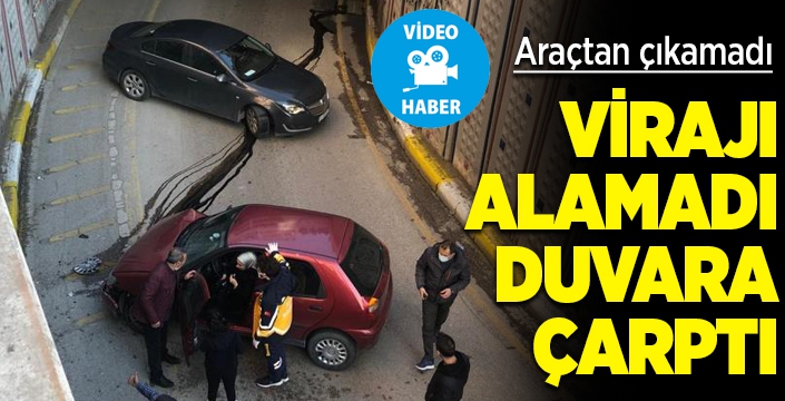 Erzurum’da meydana gelen trafik kazasında alt geçitten çıkış yapan sürücü virajı alamayınca duvara çarptı.